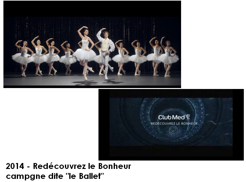 2014 : Lancement d’un spot pub TV dit « le ballet » Cette publicité produite par l’agence Saatchi & Saatchi + Duke et réalisée par Xavier Giannoli montre à l’écran un ballet classique de l’Opéra finissant à coup de pas chassés dans une piscine sur l’air de Darla Dirladada. Thierry Lhermitte assis comme spectateur apporte une touche finale en disant « C’est marrant, ce n’est pas du tout le souvenir que j’en avais ». La nouvelle signature « Redécouvrez le bonheur » est utilisée.
