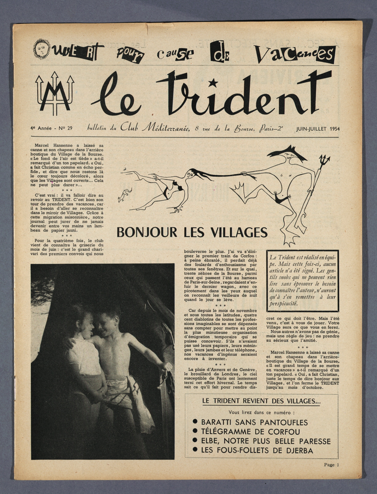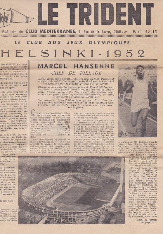 During these early years of existence, some of the co-creators of the Magical Villages joined the Club Méditerranée association. Dimitry PHILIPPOFF in 1951, the following year Judith BLITZ (Didy). Both were promoted to village leaders. He left his mark on the history of Club Méditerranée.