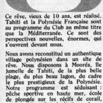 Para que conste: Tras la inauguración del pueblo de Puna'auia en 1955, el Club había perdido un poco el interés por el destino, prefiriendo destinos más mediterráneos. Reconstruir un pueblo al otro lado del mundo es caro y, según los parisinos, no rentable.