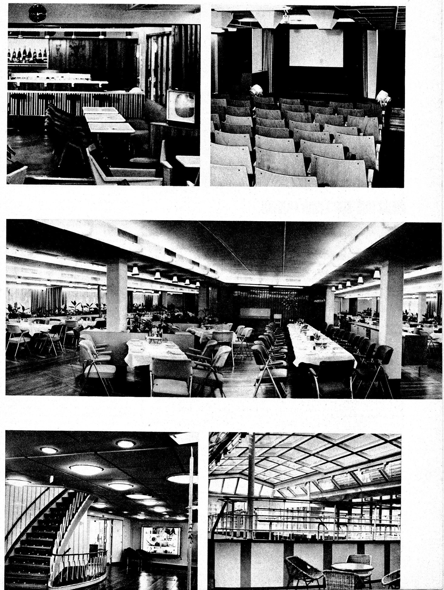 Le navire accueille cinq bars, une salle de cinéma de cent vingt places, une salle de jeux, un salon de musique, une bibliothèque, une discothèque, un night club , une piscine et un bassin pour les enfants, deux orchestres , bref un vrai village du club flottant ! . Les cabines des passagers disposaient toutes de l’air conditionné, du téléphone et, au moins, d’un cabinet de toilette. Elles se différenciaient toutefois par le nombre de couchettes installées.(de 2, 3 voire 4 couchettes). Les cabines de 4 personnes disposaient de couchettes superposées alors que les autres avaient des lits séparés. À noter que 50% de réduction sur le prix du séjour est proposé pour les GMs partageant une cabine de 4 couchettes s’ils s’inscrivent ensemble.