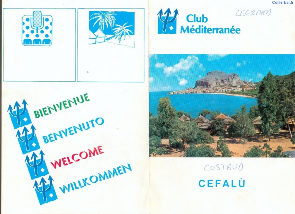 Par le biais d’un parrain, (et oui a un moment, il existait des bulletins de parrainage), elle s’inscrit au Club Méditerranée et part dans leur village situé en Sicile à Cefalu. Nous sommes à l’été 1962. (Le Cdv est Jean Paul Richez )