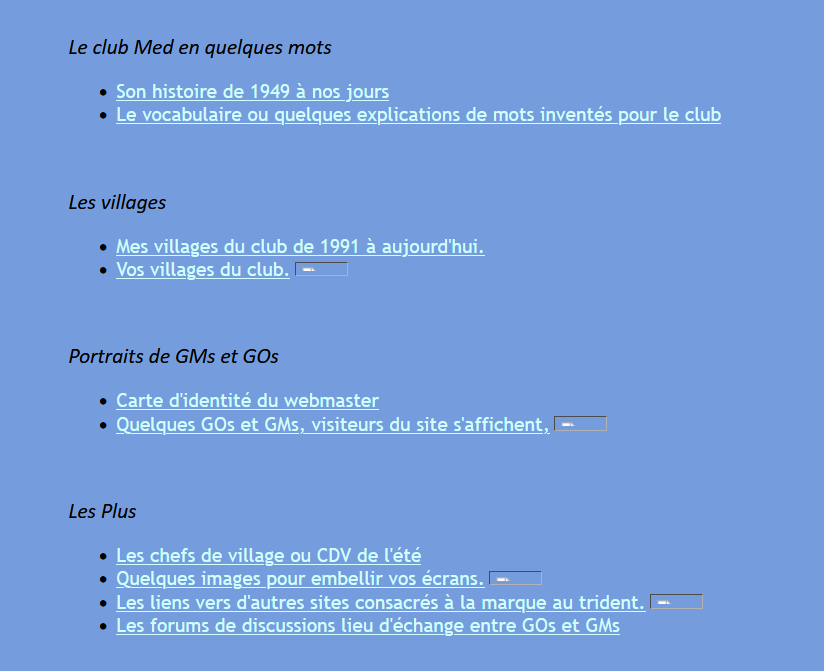Avec la démocratisation d’Internet, naissent les blogs et les petits sites personnels. Maitrisant l’outil informatique (j’étais et je suis toujours dans le domaine de l’informatique), je conçois un petit site internet ou je parle de mes vacances au Club et de ce qu’il faut voir aux alentours des villages. Du texte, et des photos illustrent mes pages. Le site comporte également un forum de discussion ou les visiteurs peuvent échanger (Facebook, Messenger, Whatsapp et autres n’existaient pas encore à l’époque) . J’avais appelé ce site souvenirs-dun-gm.net