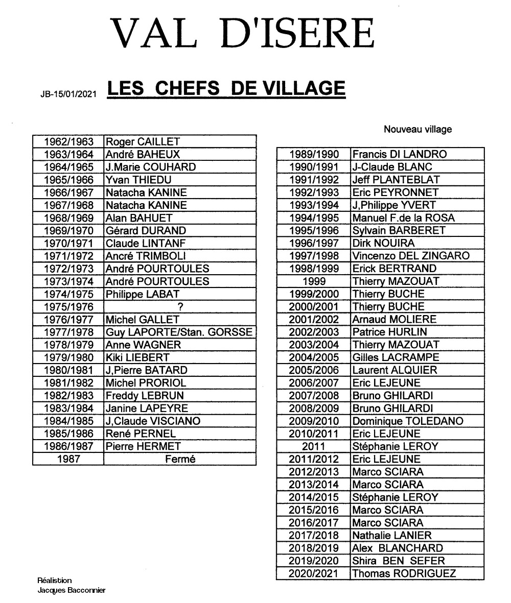Roger CAILLET was dorpshoofd gedurende het eerste winterseizoen. Pierre Hermet hield toezicht op de sluiting in 1987.